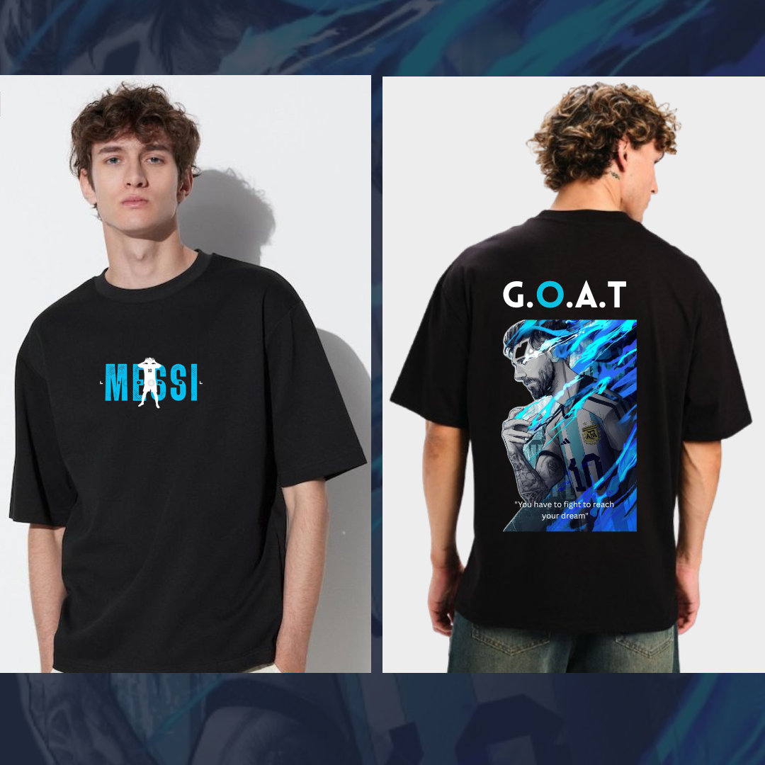 Upgrade your streetwear game with our premium oversized t-shirt featuring an iconic Messi design. Crafted for comfort and style, this tee is perfect for everyday wear and football fans alike.